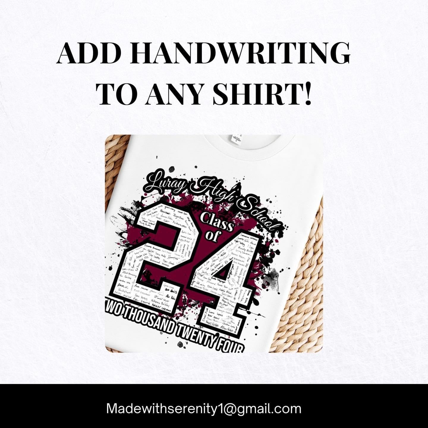 Honor the Memory of Your Loved Ones with Timeless Keepsakes. Whether It Be "In Memory" shirts, or Graduation T-Shirts for Seniors, Handwriting Is Always Special!